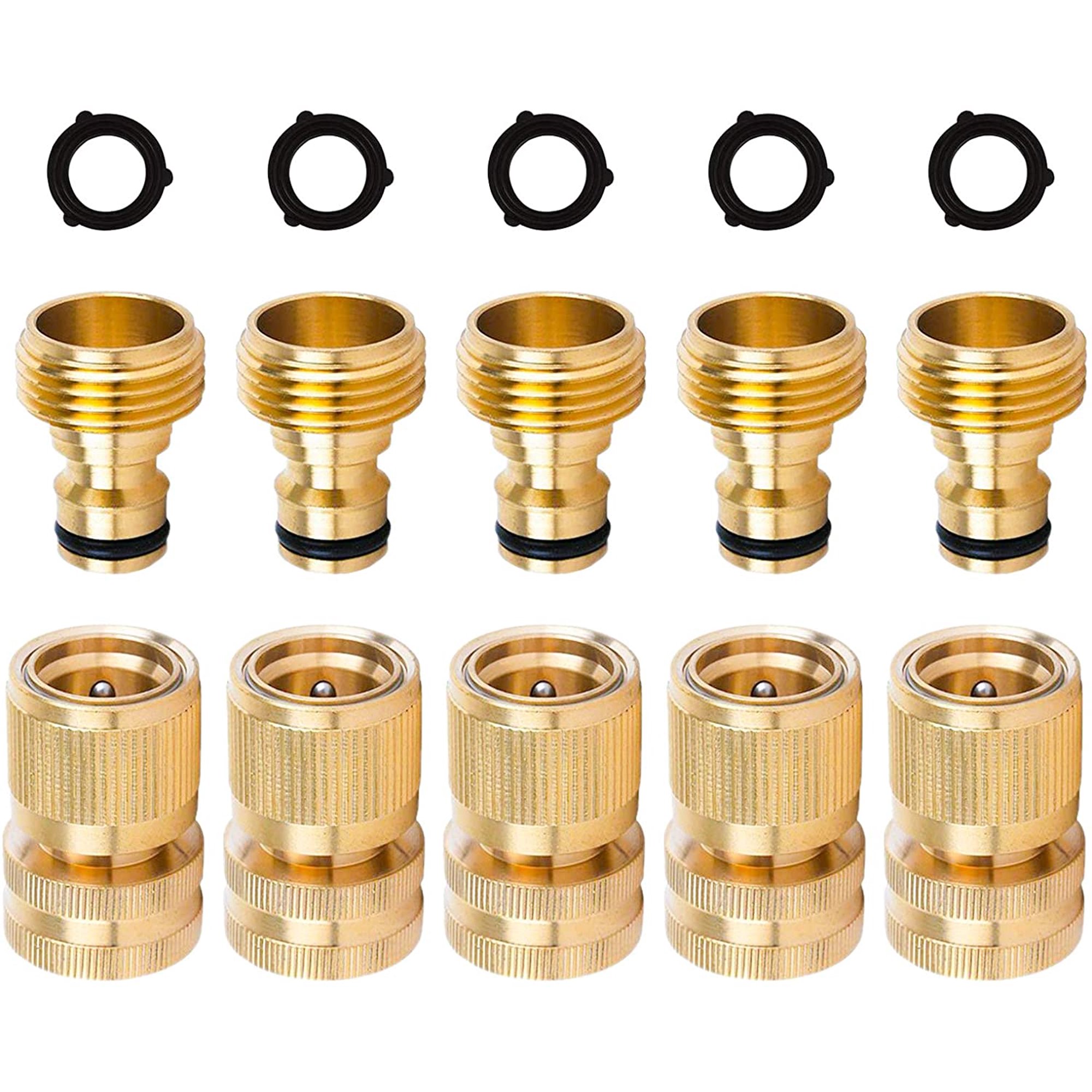 Amazon Com Shownew Garden Hose Quick Connectors Solid Brass 3 4 Inch Ght Thread Easy Connect Fittings No Leak Water Hose Male Female Value Pack 5 Patio Lawn Garden